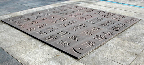 大雁塔北廣場(chǎng)的細(xì)部設(shè)計(jì)也盡顯唐代的歷史印跡,多處雕鑿出唐代盛行的纏枝圖案即波狀的連續(xù)紋樣與花草相結(jié)合的圖案,疏密勻稱、豐滿圓潤(rùn),構(gòu)圖活潑自由。大唐書法的地景浮雕共4組16塊。將唐代書法代表人物歐陽(yáng)詢、顏真卿、柳公權(quán)、虞世南、褚遂良、懷素、張旭等的著名書帖,雕刻于紫砂巖之上,與廣場(chǎng)上的唐代花紋地景浮雕協(xié)調(diào)搭配,使廣場(chǎng)唐文化氛圍更加厚重。燈具設(shè)計(jì)也頗具特色,運(yùn)用現(xiàn)代材料結(jié)合中國(guó)傳統(tǒng)風(fēng)格,石燈的粗獷,從木窗形式演變?yōu)楝F(xiàn)代的玻璃木墻方窗,并將唐代詩(shī)文鐫刻于此,讓人細(xì)細(xì)品味唐詩(shī)的魅力。燈柱加一層如宣紙般柔和的絹絲玻璃作為保護(hù)措施,不刺激人眼,充分體現(xiàn)出廣場(chǎng)中細(xì)部設(shè)計(jì)的人性化。