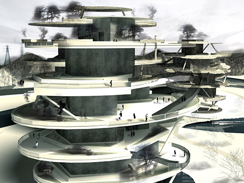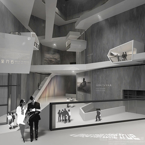 項目名稱: “破綻重生”創(chuàng)意空間設計設計說明: 作品基于的創(chuàng)作理念是:用文學想象(<徐霞客游記>)的形式去創(chuàng)造空間與建筑,使得建筑空間展覽的方式由橫向變?yōu)榭v向發(fā)展,為高處的展覽空間提供更多可能性。裝置也是從這個理念出發(fā)深入,表現(xiàn)城市現(xiàn)代化建設的小力量回歸山川田園。
