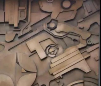 綰傳》中“左右圖史”一詞。浮雕以《左圖右書(shū)》為題,將學(xué)校相關(guān)專(zhuān)業(yè)的符號(hào)和書(shū)籍元素相互融合,既凸顯西理工的學(xué)科特點(diǎn),又吻合圖書(shū)館空間的文化氛圍。