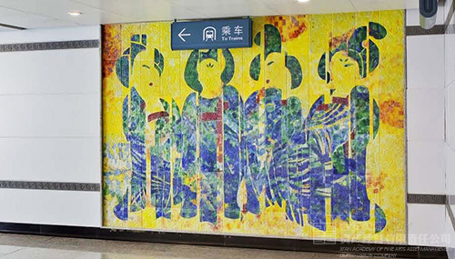 西安地鐵二號(hào)線建設(shè)以唐文化為宗旨,二號(hào)線人文景觀墻的設(shè)計(jì)表現(xiàn)了地域特色,適應(yīng)了地鐵空間文化標(biāo)識(shí)的需要。景觀墻的公共藝術(shù)作品通過(guò)視覺(jué)語(yǔ)言緩解了乘客心里疲勞,放松乘客情緒,隨著地鐵各站點(diǎn)公共藝術(shù)主題的變化,使乘客能輕松辨別所屬區(qū)域位置,用藝術(shù)形象呈現(xiàn)出的自身特點(diǎn)區(qū)分不同區(qū)域和空間,實(shí)現(xiàn)行為上的指導(dǎo),是功能和美學(xué)的完美結(jié)合。