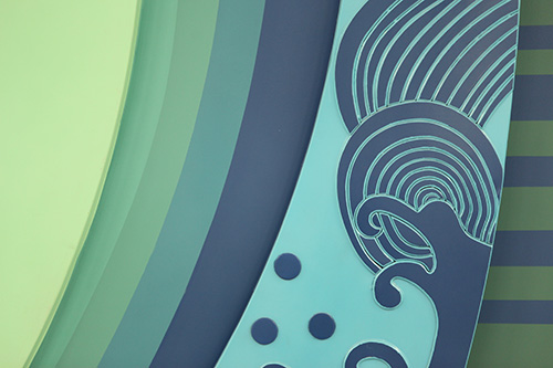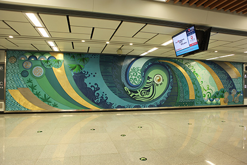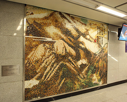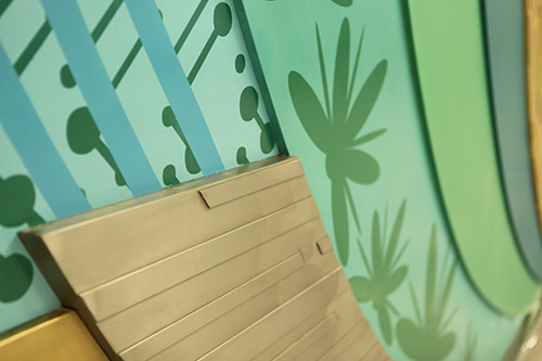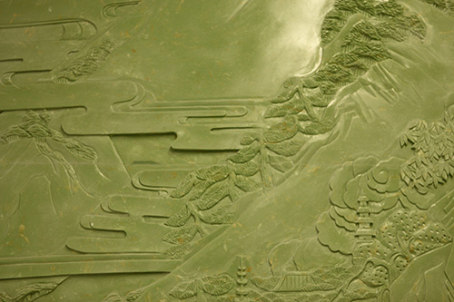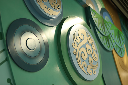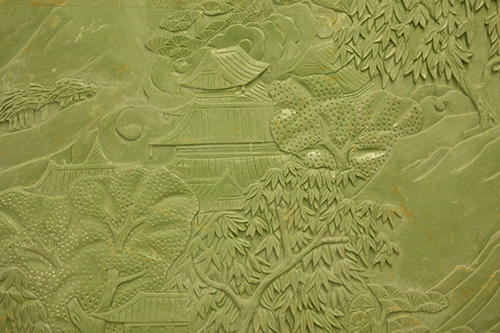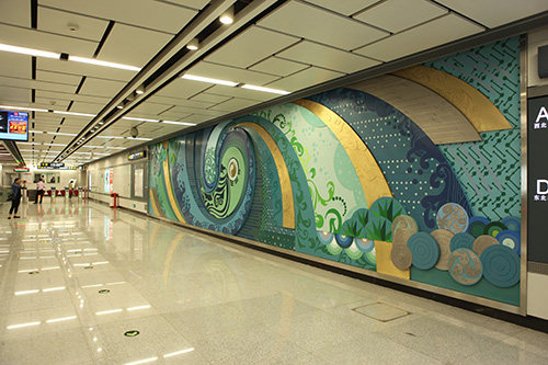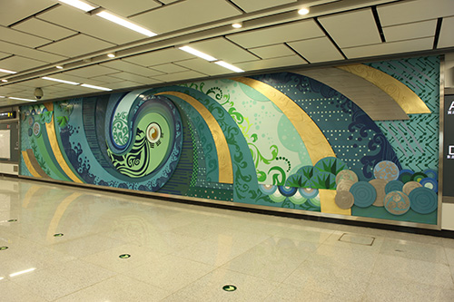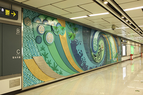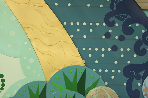 作品通過(guò)寫實(shí)手法與裝飾手法相結(jié)合,再現(xiàn)“翠華宮”與“上林苑”的自然景觀,象征了西安的綠色生態(tài)發(fā)展。