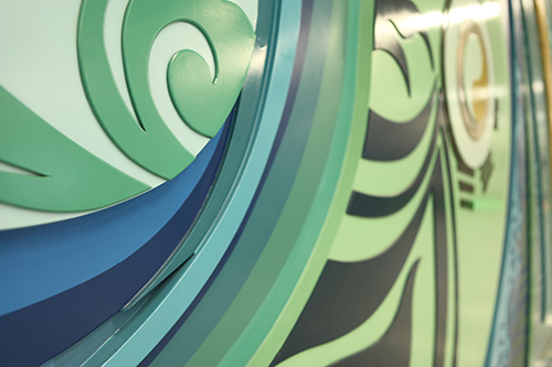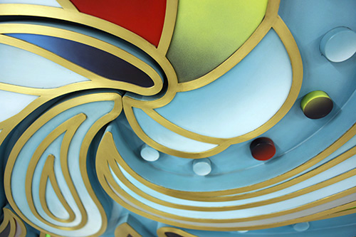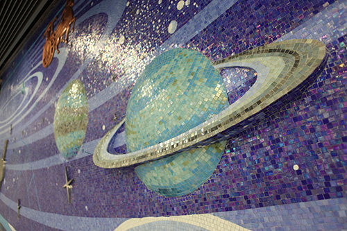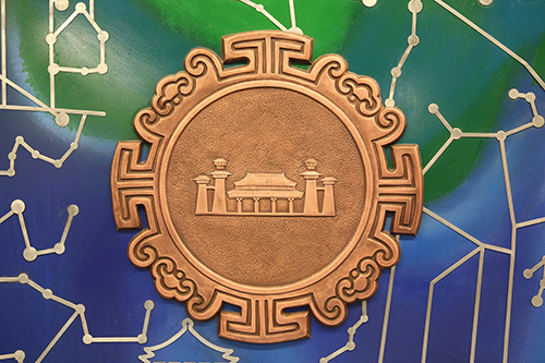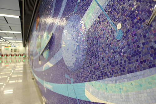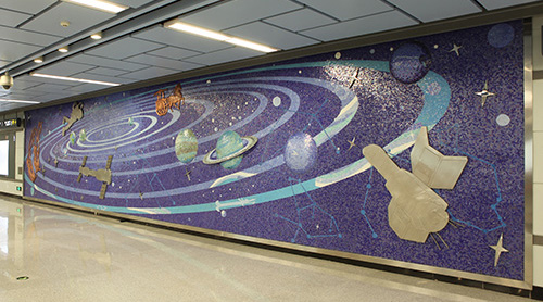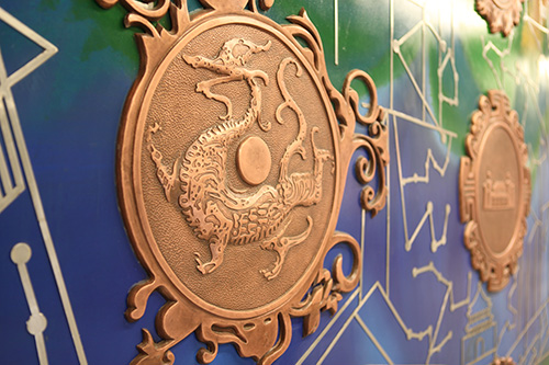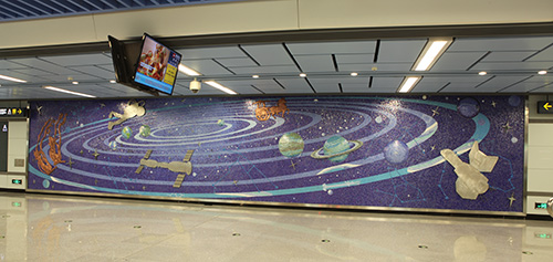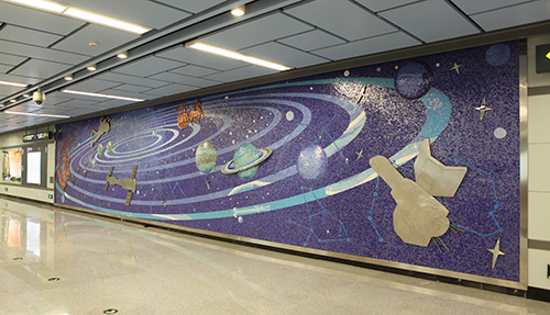 作品以飛天、航天器、星系等為元素,體現(xiàn)出從古至今人類對(duì)于浩瀚宇宙的探索,表達(dá)了人們對(duì)于美好未來(lái)的向往。