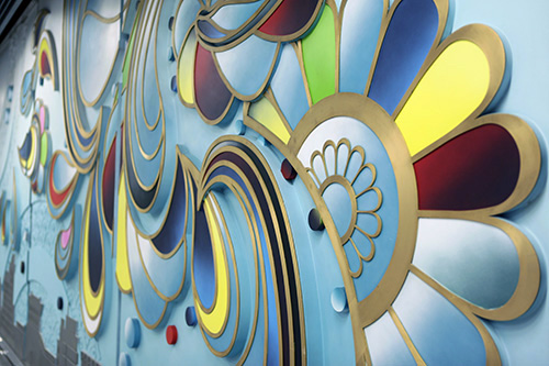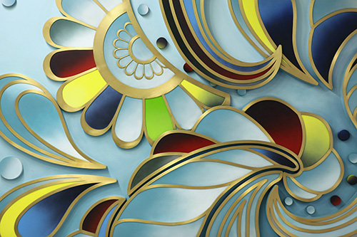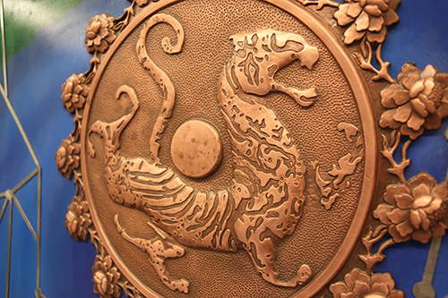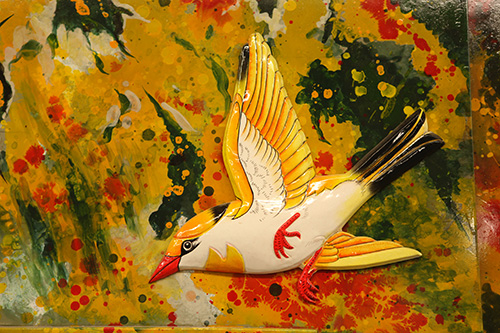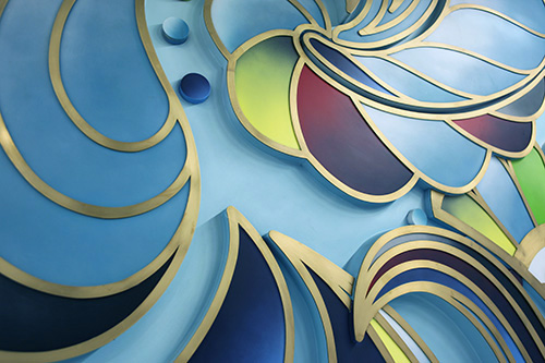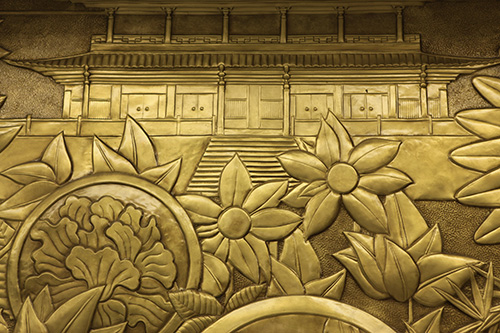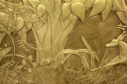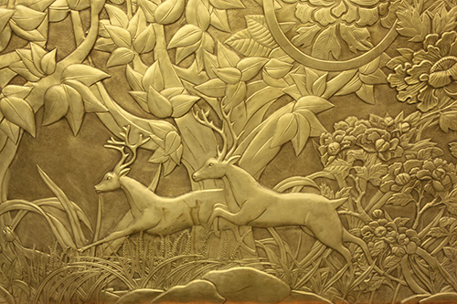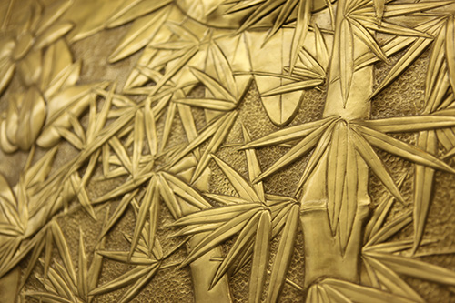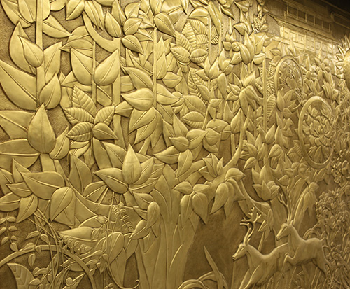 作品以西安的自然生態(tài)為主題,采用漆畫與浮雕相結(jié)合的手法,創(chuàng)作出層次豐富、鎏金溢彩的藝術(shù)效果,象征人們安逸、閑適的美好生活。