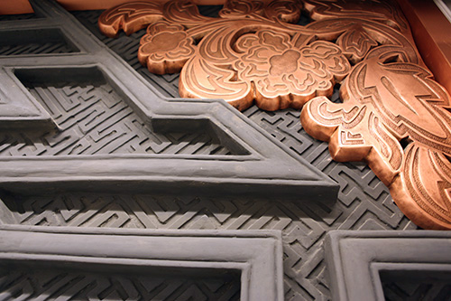 作品選用古代磚雕的吉祥紋樣展現(xiàn)傳統(tǒng)氣息,以現(xiàn)代構(gòu)成的方式傳達(dá)時(shí)代氣息,寓意人們對(duì)于平安吉祥的向往之情。
