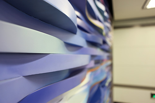 作品以現(xiàn)代材料表現(xiàn)生態(tài)自然,通過(guò)裝飾性的線條形成波光瀲滟的光影效果。生動(dòng)的再現(xiàn)了古城西安的月夜美景。