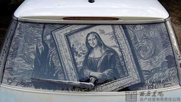 作為小孩兒來(lái)說(shuō),用手指在一面堆積滿厚厚灰塵的車窗上涂鴉是件再快樂(lè)不過(guò)的事了。但是您是否能用你的手指為我們帶來(lái)一幅《蒙娜麗莎》呢?來(lái)自德州San Marcos市的Scott Wade就是這樣的一位牛人... 作為一塊理想的"畫布",Wade的 MINI Cooper的后車窗成為了他展示藝術(shù)的舞臺(tái)。除了他的手指外,他還會(huì)使用一些傳統(tǒng)的做畫工具,比如畫筆。這一切都為他的藝術(shù)提供了靈感。之上的這些作品很好的詮釋了Wade對(duì)于達(dá)芬奇的"蒙娜麗莎"的理解。