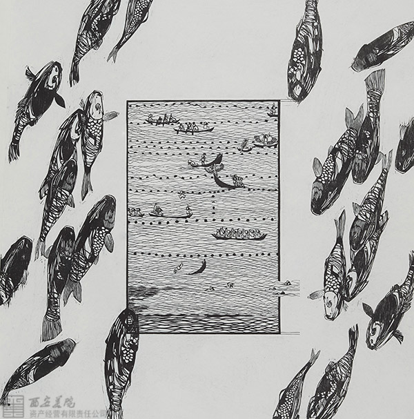 禪宗將修行的境界概括為三重:第一重,看山就是山,看水就是水;第二重,看山不是山,看水不是水;第三重,看山還是山,看水還是水。在畢業(yè)創(chuàng)作中將水反復刻畫表現,又加進去如此豐富的填充物,讓人不禁聯(lián)想,索婧雅是不是正在第二重境界參悟著人生世道的迷茫。