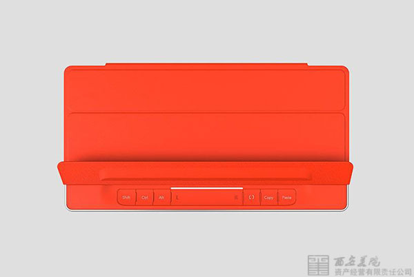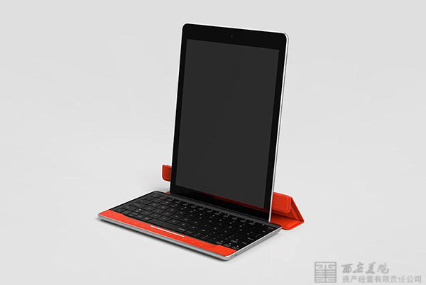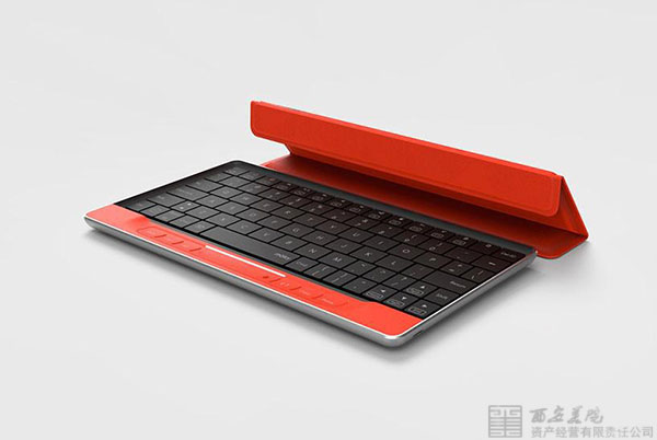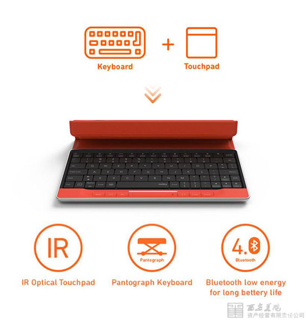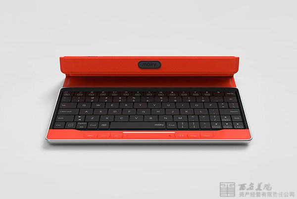 ↓帶有隱形觸摸板的平板電腦藍(lán)牙鍵盤Moky翻折的保護(hù)套還能夠充當(dāng)智能平板的支架