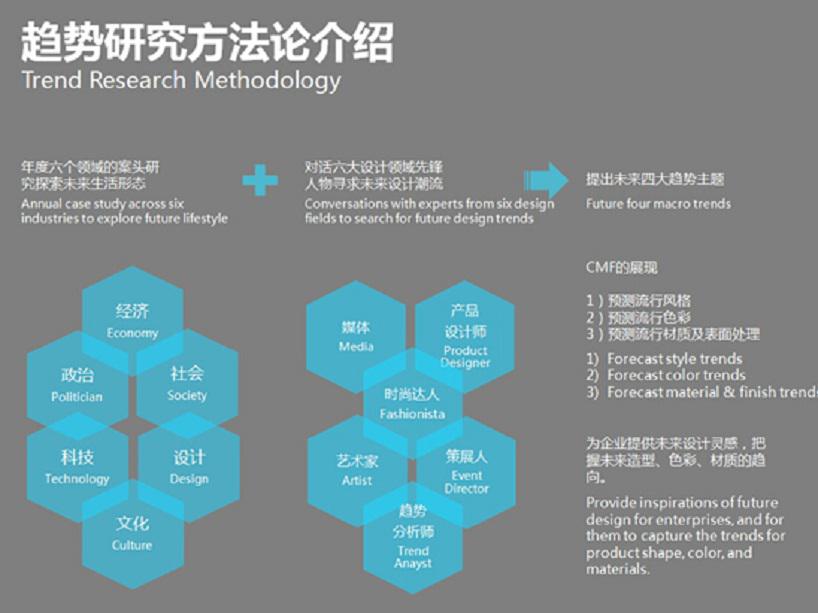 《中國(guó)設(shè)計(jì)趨勢(shì)報(bào)告》是YANG DESIGN設(shè)計(jì)策略研究所每年一度的、具有前瞻性的趨勢(shì)預(yù)測(cè)項(xiàng)目。在以PESTCD方法分析中國(guó)大背景、生活形態(tài)、消費(fèi)趨勢(shì)的基礎(chǔ)上,采訪各領(lǐng)域的前沿專家,并根據(jù)資料收集和訪談總結(jié)未來2年中國(guó)消費(fèi)者的心理訴求,提出對(duì)應(yīng)的設(shè)計(jì)趨勢(shì),落實(shí)到產(chǎn)品設(shè)計(jì)可應(yīng)用的風(fēng)格、CMF(色彩/材質(zhì)/表面處理)提案。