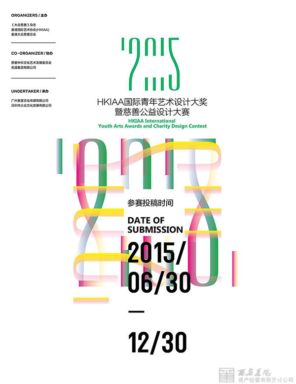 2015 HKIAA國(guó)際青年藝術(shù)設(shè)計(jì)大獎(jiǎng)暨慈善公益廣告設(shè)計(jì)大賽(簡(jiǎn)稱(chēng):青藝獎(jiǎng)),由《大眾慈善》雜志、香港國(guó)際藝術(shù)協(xié)會(huì)(HKIAA)、香港大眾慈善總會(huì)共同主辦,慈愛(ài)中華文化藝術(shù)發(fā)展委員會(huì)、名道集團(tuán)有限公司協(xié)辦,廣州美度文化傳媒有限公司、深圳市大眾文化發(fā)展有限公司承辦。