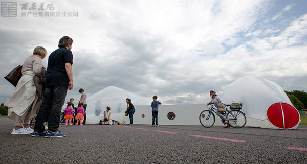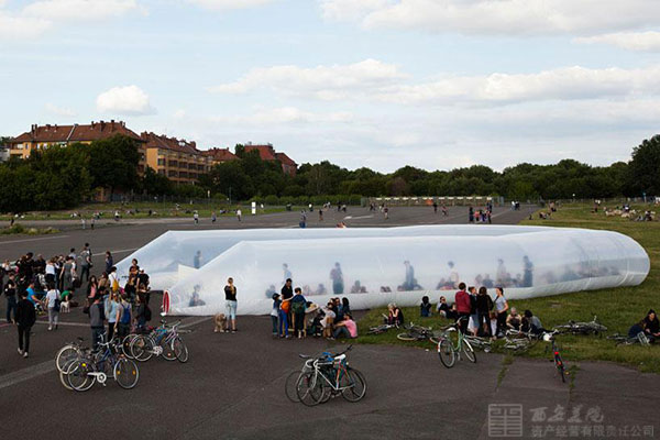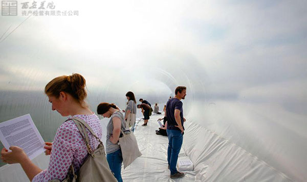 plastique fantastique的最新裝置“救生船-第五章(liveboat – chapter five)”表達了對難民問題的持續(xù)關注。該作品形似墜落在柏林泰伯霍夫機場跑道的巨型充氣式救生船,它代表一個長途辛苦旅程的結束。在結構內部,參觀者可以循環(huán)聽到以多種語言播放的荷馬的《奧德賽》片段背景音,并夾雜著零碎的難民故事。