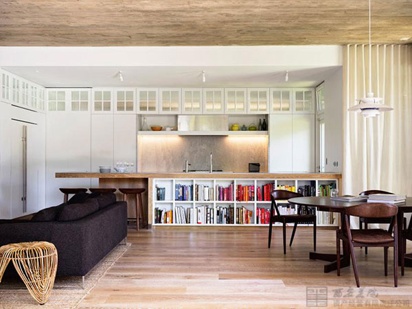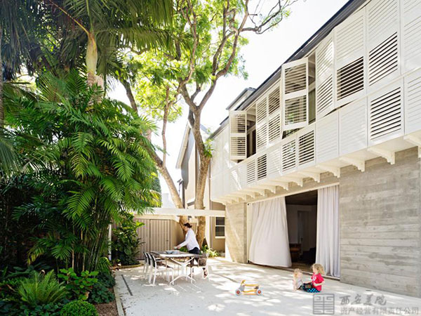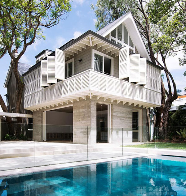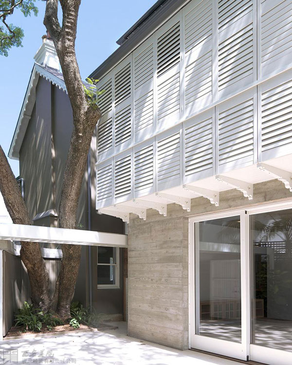 該項(xiàng)目坐落在悉尼外圍帕丁頓寧?kù)o的郊區(qū),luigi rosselli事務(wù)所重新使這棟哥特復(fù)興式別墅煥發(fā)了生機(jī)?!鞍⒖ǖ蟻喿≌?,該名稱來(lái)源于寧?kù)o快樂(lè)的神話之地,該項(xiàng)目與街道隔離開(kāi)來(lái)卻意外地朝向?qū)掗煹幕▓@美景和一處私人泳池。希望與該建筑原本的風(fēng)格相一致,新的外立面與維多利亞式的前陽(yáng)臺(tái)緊密的融合在一起。方石砌體墻上的圖案進(jìn)行了重新創(chuàng)作,但是使用了不同的材質(zhì)。