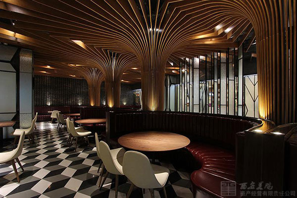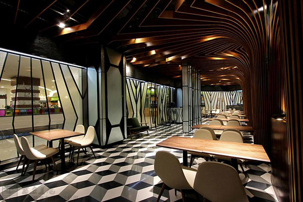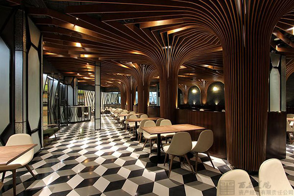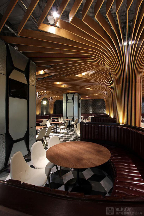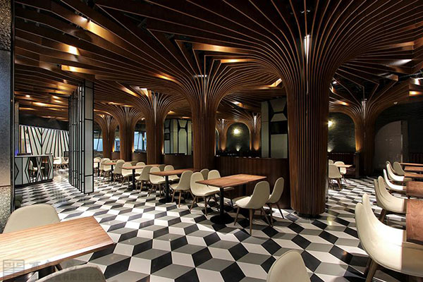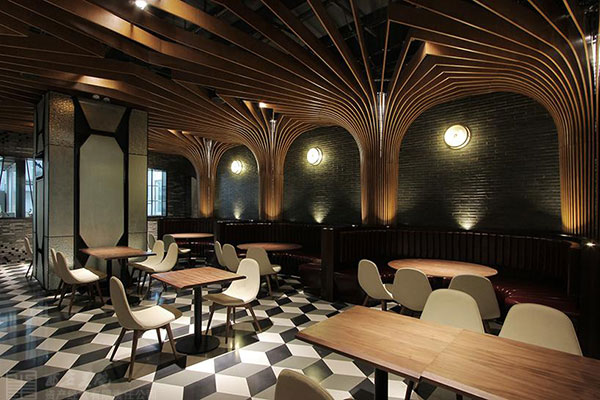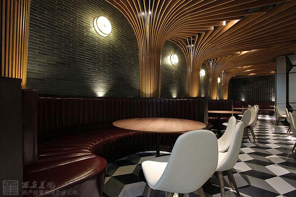 這是為一個(gè)連鎖餐飲品牌所做的全案品牌空間設(shè)計(jì)。餐廳位于中國西北部的云南,設(shè)計(jì)概念來自于中國傳統(tǒng)“竹編”的元素與西方“拱形”空間結(jié)構(gòu)相結(jié)合,再運(yùn)用模數(shù)化的設(shè)計(jì)方法將其實(shí)現(xiàn),呈現(xiàn)出帶有東方懷舊情感體驗(yàn)的后現(xiàn)代主義風(fēng)格。室內(nèi)以巨大的“竹樹”為頂梁而呈現(xiàn),在內(nèi)就餐時(shí)帶來一種生動(dòng)流暢的的就餐體驗(yàn)。