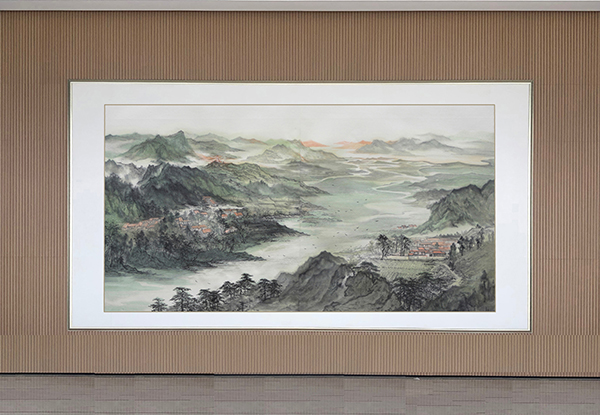 《山河表里》這一主題的美術(shù)創(chuàng)作以山水畫藝術(shù)語言突出表現(xiàn)了渭南地域渭河華山及紅色革命圣地西柏坡開闊宏偉、雄強(qiáng)博大的時代氣象。創(chuàng)作設(shè)計響應(yīng)政府城市發(fā)展號召,融入各級縣市的建設(shè)與發(fā)展,是在促進(jìn)農(nóng)文旅聯(lián)動發(fā)展,助推蒲城追趕超越的背景下展開的主題性創(chuàng)作。通過優(yōu)秀的文化藝術(shù)創(chuàng)作把豐富的山水文化資源與紅色革命教育與宣傳帶入老百姓的生活當(dāng)中,積極將紅色文化、山水文化資源進(jìn)行全面深入的聯(lián)動推廣,為蒲城文化建設(shè)美術(shù)創(chuàng)作以及服務(wù)區(qū)域經(jīng)濟(jì)與社會發(fā)展做出了貢獻(xiàn)。
