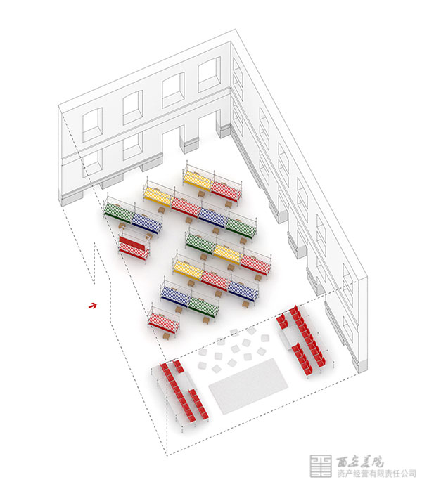 Cuarto Orden的設(shè)計(jì)方案結(jié)合了兩種幾乎毫無(wú)關(guān)聯(lián)的材料,即腳手架和帆布。這兩種材料除了具有易于使用、形式簡(jiǎn)單的特征之外,還是用于陳列書(shū)籍的完美工具。一個(gè)單位的展架能夠?yàn)閮擅麉⒄股烫峁┤龎K展覽書(shū)籍區(qū)域和一塊底部存貨區(qū),展區(qū)分別有0.5米高的多用途隔板層、1米高的主隔板層以及2米高的掛物層。展架上的可移動(dòng)木板同樣可用于擺放重量較重的書(shū)籍或其它出版物。 ↓帆布和木板被用于擺放出版物 展層置物臺(tái)由拼接在一起的帆布碎片組成,用塑料扎線帶將帆布與金屬架連接。在展架最頂層的兩條金屬管之間拉著幾根繃緊的繩子,可以用來(lái)垂掛各種物品,并且高度正好與人們眼睛的高度持平。沒(méi)有添加任何成本或借助其它元素,一張簡(jiǎn)單色調(diào)的帆布就將展會(huì)熱鬧的氣氛襯托地恰到好處。如何延長(zhǎng)材料的使用壽命是這項(xiàng)設(shè)計(jì)中的一個(gè)重點(diǎn)問(wèn)題。那些專(zhuān)門(mén)為這次展會(huì)租來(lái)的腳手架可以直接存放在倉(cāng)庫(kù)里或是繼續(xù)被用到別的活動(dòng)中。帆布則有點(diǎn)棘手,但相對(duì)來(lái)說(shuō)它比較容易被重復(fù)再利用。它們可以再次作為設(shè)計(jì)師的創(chuàng)作材料,或是做成其它展會(huì)的標(biāo)志和展示工具,又或者是做成窗簾、桌布和沙灘袋。總的來(lái)說(shuō),這種展架即操作簡(jiǎn)單又可行,最重要的是,不產(chǎn)生任何浪費(fèi)。 ↓展架可以根據(jù)參展商的要求搭建 ↓彩色韁繩將帆布與腳手架結(jié)構(gòu)連接起來(lái),形成一個(gè)拉伸的平面 ↓垂直和水平的鋼筋和蓮座狀的支架結(jié)構(gòu) ↓彩色帆布使空間充滿色彩 ↓兒童出版物專(zhuān)柜 ↓每個(gè)展架都使用純色和條紋雙色的帆布 ↓木板用于陳列書(shū)籍 ↓圖紙顯示每個(gè)展架的組裝方法 ↓總平面圖 圖文來(lái)源:designboom設(shè)計(jì)邦 編輯:楊匡 ?【西美微畫(huà)廊·尋找才俊計(jì)劃】? ▲無(wú)論是設(shè)計(jì),還是雕塑、繪畫(huà),只要你有才,我們就關(guān)注! ▲把您的簡(jiǎn)歷、作品名稱(chēng)及簡(jiǎn)介、作品圖片發(fā)送至郵箱:[email protected],注明【尋找才俊】,就有機(jī)會(huì)在我們的微信平臺(tái)上看到你的英姿!