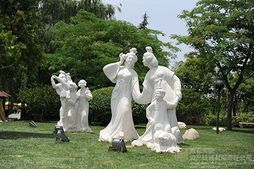項(xiàng)目名稱: 大唐芙蓉園內(nèi)群體雕塑《麗人行》主要設(shè)計(jì): 馬改戶、馬輝設(shè)計(jì)說(shuō)明: 位于大唐芙蓉園芙蓉池北岸的雕塑群,占地1820平方米,取自杜甫名篇《麗人行》“三月三日天氣新,長(zhǎng)安水邊多麗人”之詩(shī)意,參予唐代仕女上巳節(jié)游春踏春的民族風(fēng)情為基本素材,塑造出不同形態(tài)的仕女形象。